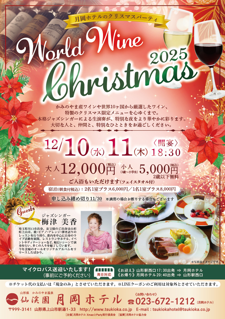 ジャズ&厳選ワイン&スペシャルディナー☆月岡ホテルのクリスマスパーティー☆